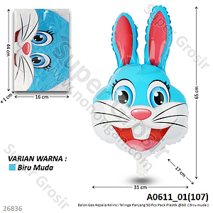 Balon Gas Kepala Kelinci Telinga Panjang 50 Pcs Pack Plastik @60