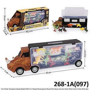 Koper Diecast Bentuk Truk Kontainer Kepala Badak F/W Isi Hewan Liar 6 Pcs dan Pohon Rhino Truck 1 Inner 30 Pcs Box @60