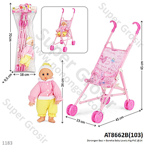 Mainan Stroller Bayi Set Boneka Baby Lovely Ktg PVC @24