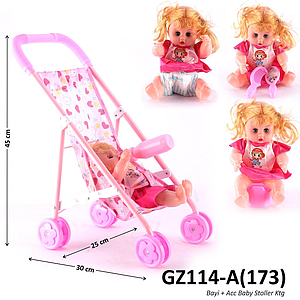 Mainan Stroller Bayi Set Boneka dan Acc Baby Stroller Ktg PVC @48