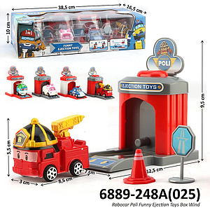 Robocar Poli 4 Pcs P/B + Garasi Pelontar Mobil Funny Ejection Toys Box Window @48