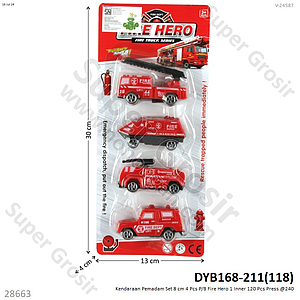 Kendaraan Damkar Set 8 cm 4 Pcs P/B Fire Hero 1 Inner 120 Pcs Press @240