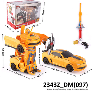 R/C Mobil Sedan Chevrolet Camaro Bumblebee Deform 1:22 Charge + Kabel Charge Suara Lampu Remote Model Pedang Transforming Autobot 2,4 Ghz 2 Channel Box Window @24