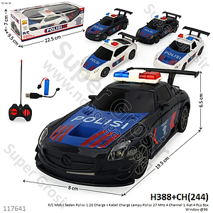 R/C Mobil Sedan Polisi 1:20 Charge + Kabel Charge Lampu Polisi 27 MHz 4 Channel 1 Ikat 4 Pcs Box Window @96