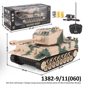 R/C Tank 1:30 Charge + Charger Lampu Suara Gerak Military Series 27 Mhz 4 Channel Box Window @24