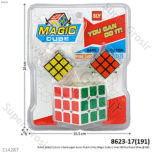 Rubik 3x3x3 5,6 cm + Gantungan Kunci Rubik 2 Pcs Magic Cube 1 Inner 90 Pcs Press Mika @180