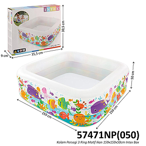 Kolam Renang Anak Intex Persegi 3 Ring Motif Ikan 159x159x50cm Box @3