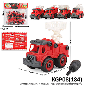 Truk Damkar 4 Pcs F/W + Obeng DIY Mekanik Cilik Pemadam Ktg PVC @72